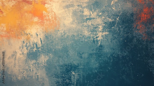 Distressed textured background with teal, orange, and white paint.