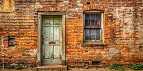 Distressed brick house with a worn-out old door, brick houses, rustic doors
