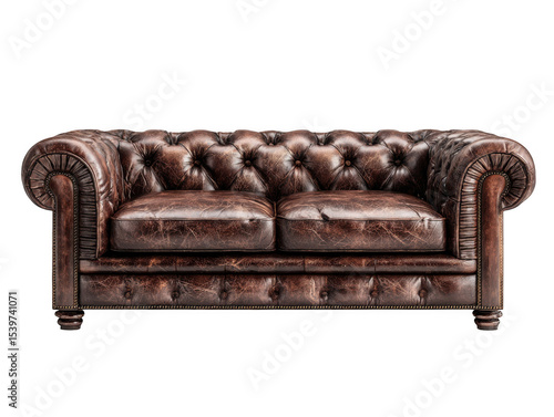 Distressed brown leather chesterfield sofa isolated on transparent background
