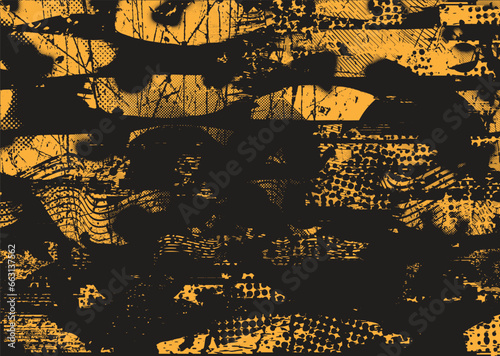 Distressed dotted design element. Duo tone, grunge poster . Modern art .Abstract, grungy composition . Half tone background. Halftone dots texture effect .Contemporary vector. Grange design