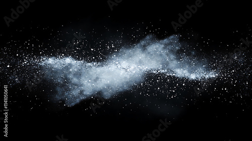 Distressed grainy white fine dust particles speckled gradient texture on a black background