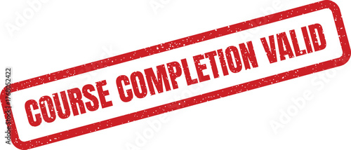 Distressed rectangular rubber stamp showing COURSE COMPLETION VALID text, signifying official recognition and successful qualification approval