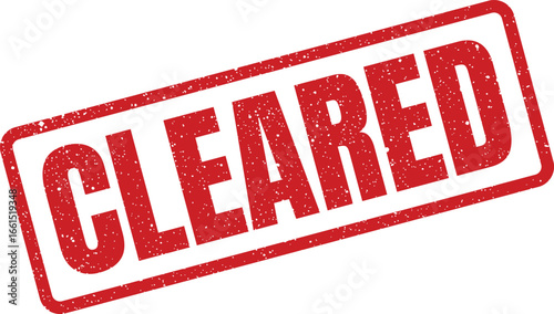 Distressed red rubber stamp effect with rectangle border showing the word CLEARED diagonally