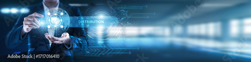 Distribution executive holding efficient global industry, supply chain management, logistics optimization, inventory control, warehouse operations, transportation planning, order fulfillment