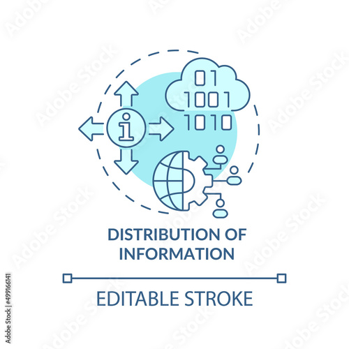 Distribution of information turquoise concept icon. Purpose of information sector abstract idea thin line illustration. Isolated outline drawing. Editable stroke. Arial, Myriad Pro-Bold fonts used