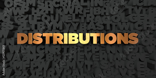 Distributions - Gold text on black background - 3D rendered royalty free stock picture. This image can be used for an online website banner ad or a print postcard.