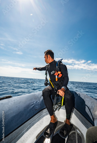 diver on the way to a dive site close to Flores Island in Komodo