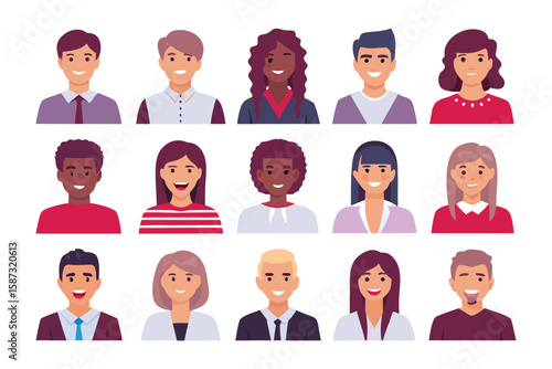 Diverse Avatar Collection: A vibrant collection of diverse avatars, each unique in their hairstyle, complexion, and attire, providing a wide range of options for digital representation.