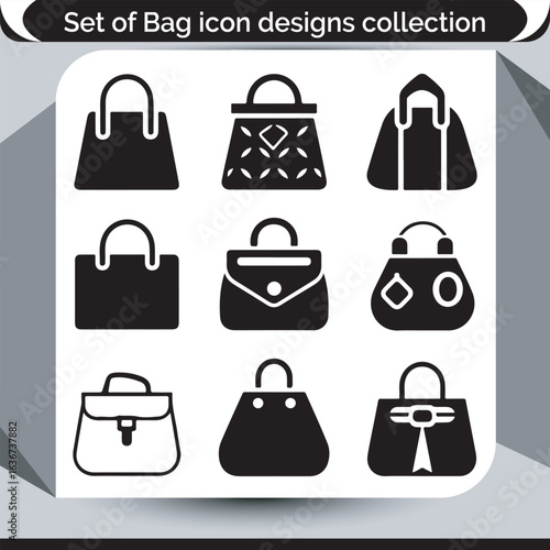 Diverse Bag Icon Set Design Collection for Fashionable and Practical Accessory Concepts