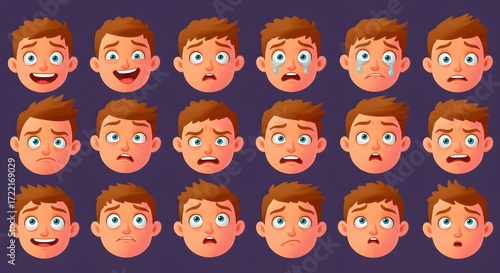 Diverse Boy Cartoon Face Expressions A Collection of Emotions
