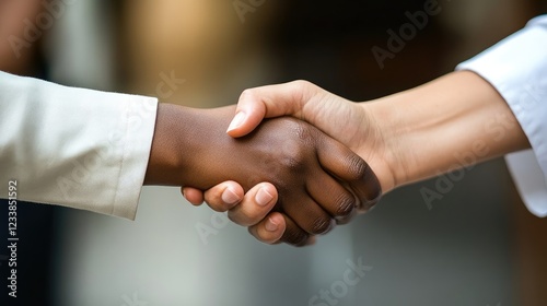 Diverse business partners shaking hands to signify collaboration and teamwork in a professional environment