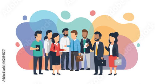 Diverse Business Team Collaboration: Flat Vector Illustration for Websites and Presentations