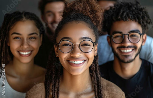 Diverse Business Team Smiling and Enjoying Together in Office, Young Adult Colleagues Laughing in Close-Up Portrait, Collaborative Workplace Concept.