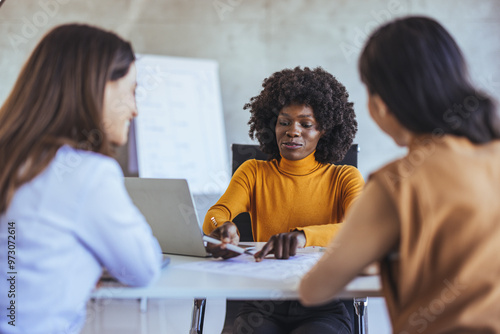 Diverse Businesswomen Collaborating in Modern Office Meeting