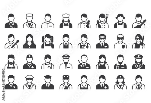 Diverse Careers and Professions Represented by Simple Silhouette Icons Displaying a Range of Professional Roles and Occupations