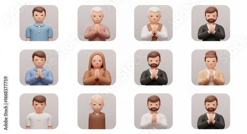 Diverse cartoon people illustrations prayer poses