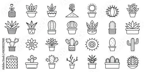 Diverse Collection of Potted Plants Line Art Icons for Interior Design and Gardening Concepts