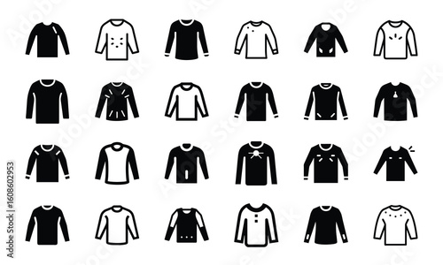 Diverse Collection of Raglan T-Shirt Silhouette Icons: Black and White Designs for Apparel, Sports, and Casual Wear
