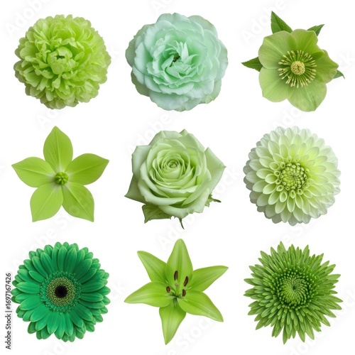 Diverse Collection of Vibrant Green Flowers Isolated