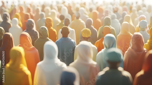 Diverse crowd gathered in a bustling urban setting,representing unity and inclusion in a multicultural community