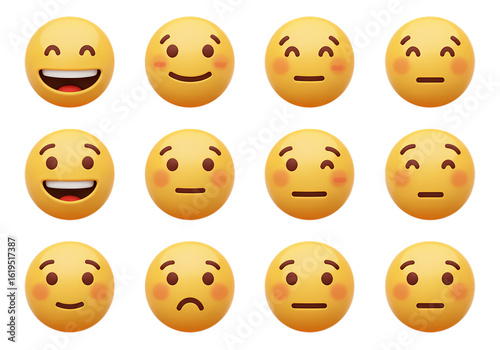 Diverse Emoji Expressions A Collection of 3D Emoticons on Transparent background