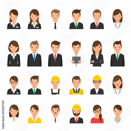 Diverse Group of Cartoon Business People and Workers in Formal Attire.