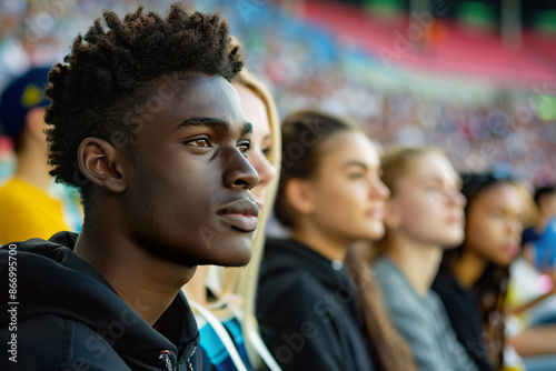 Diverse Group of Fans at a Sports Event Showing Excitement and Anticipation