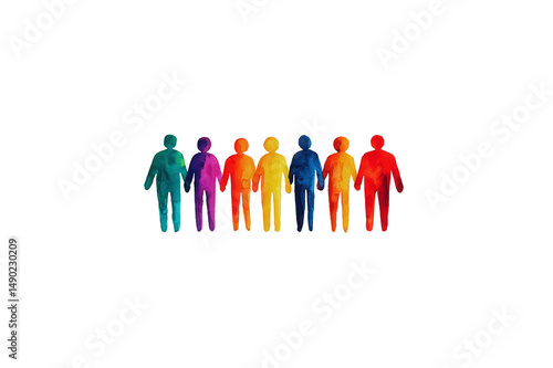 Diverse group of people holding hands colorful watercolor illustration symbolizing unity and togetherness