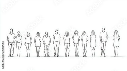 Diverse Group of People Standing in Line Outline Illustration