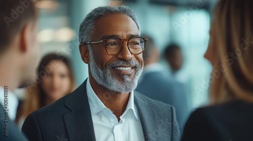 Diverse Group of Professionals Engaged in Conversation in a Modern Office Environment for Networking and Collaboration