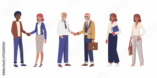 Diverse group of professionals shaking hands and standing together in a business meeting setting