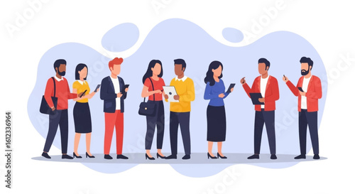 Diverse group of professionals using smartphones and tablets - perfect for websites, presentations, and marketing materials.