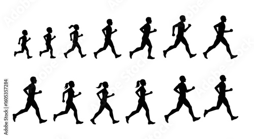 Diverse Group of Runners in Silhouette Style silhouette