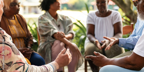 Diverse Group of Seniors Engaging in Outdoor Conversation