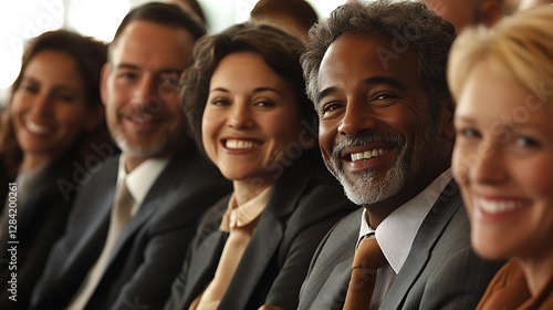 Diverse group of smiling business professionals in a row.