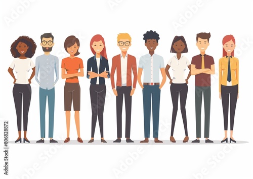 Diverse Group of Smiling Professionals Standing Confidently in Casual Attire