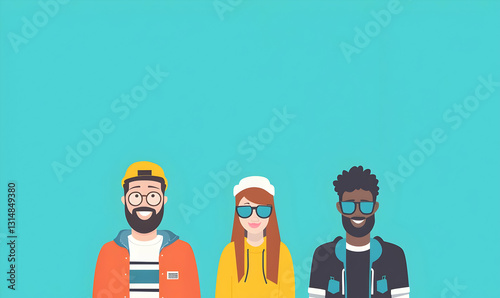 Diverse Group of Three Friends Wearing Sunglasses and Casual Attire