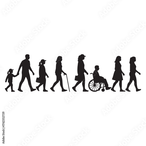 Diverse Group People Walking Silhouettes Isolated Flat Element White Background Minimal Design