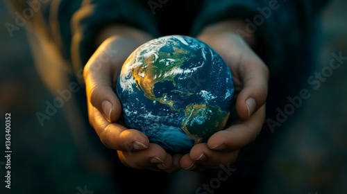 Diverse hands cradle Earth symbolizing unity and stewardship