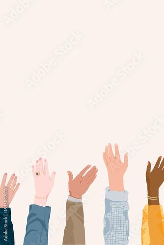 Diverse hands raising background, business illustration