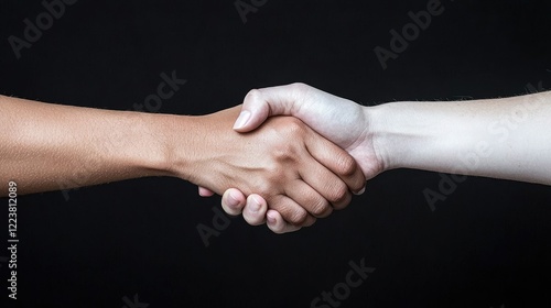 Diverse hands shake, unity, agreement, black background, partnership concept