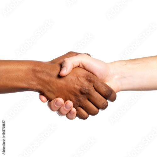 Diverse hands shaking in agreement and partnership, isolated transparent background.