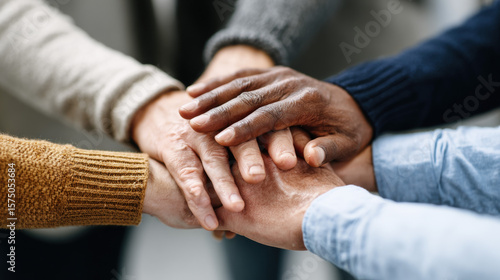 Diverse hands together unity teamwork support connection community cooperation friendship trust group