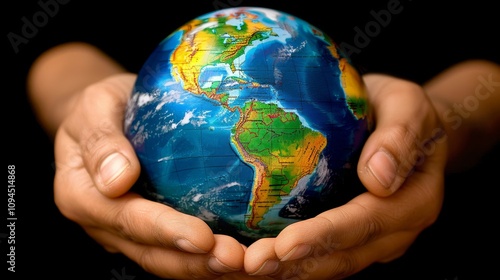 Diverse hands uniting around a globe a symbol of teamwork and global cooperation in harmony
