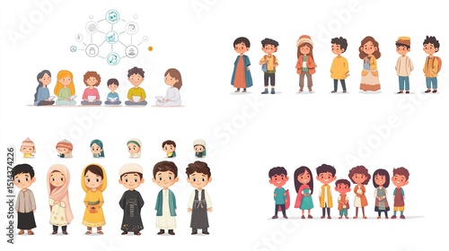 Diverse illustration of children in various attire and poses, including individual portraits and group shots, showcasing global representation and a connectedness theme above