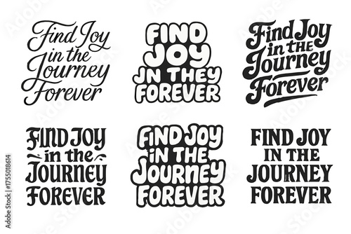 Diverse Letter Styles. Find Joy in the Journey Forever. Set lettering. harmonious lettering variations of the same emblematic concept, each with different