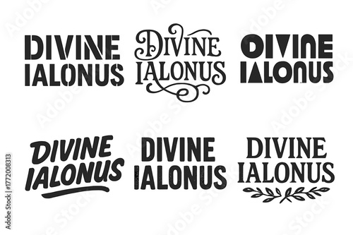 Diverse Lettering Styles. Divine Ialonus. Set lettering. harmonious lettering variations of the same emblematic concept (Stencil-inspired urban lettering,
