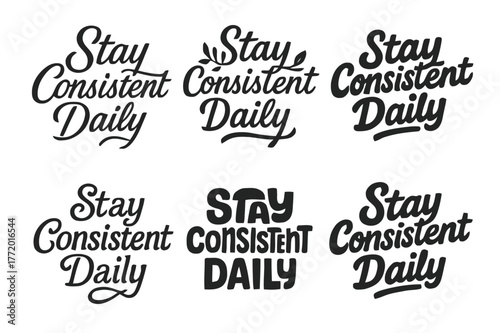Diverse Lettering Styles. Stay consistent daily. Set lettering. harmonious lettering variations of the same emblematic concept, each with different artistic