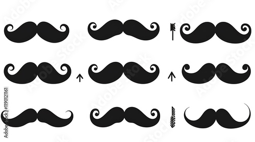 Diverse Mustache Styles, Graphic Design Elements, White Background.