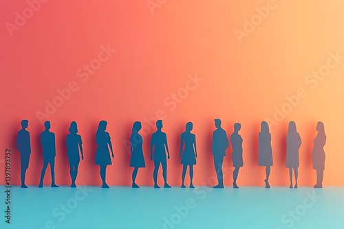 Diverse People Silhouettes on Aqua Background